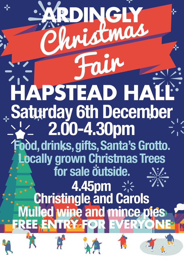 The Fair will be followed at 4.45pm by Christingle and Carols, outside the hall, led by St Peter’s Church, with mulled wine and mince pies – all are welcome!