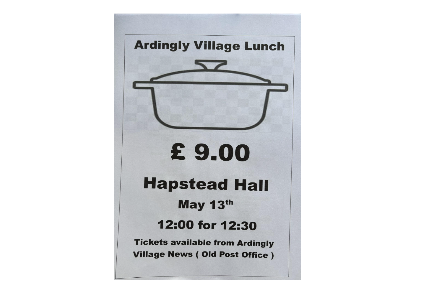 Tickets cost £9 and are available from Ardingly Village News (Old Post Office).
